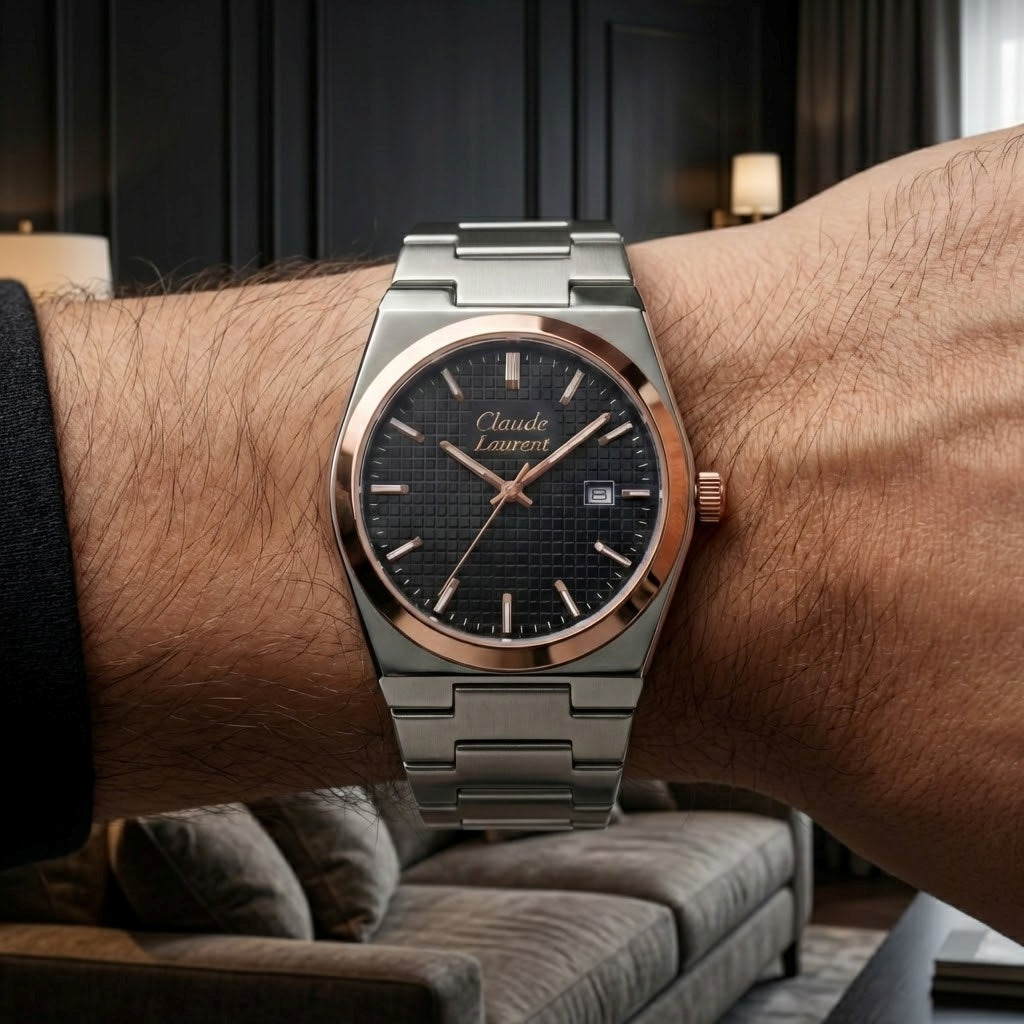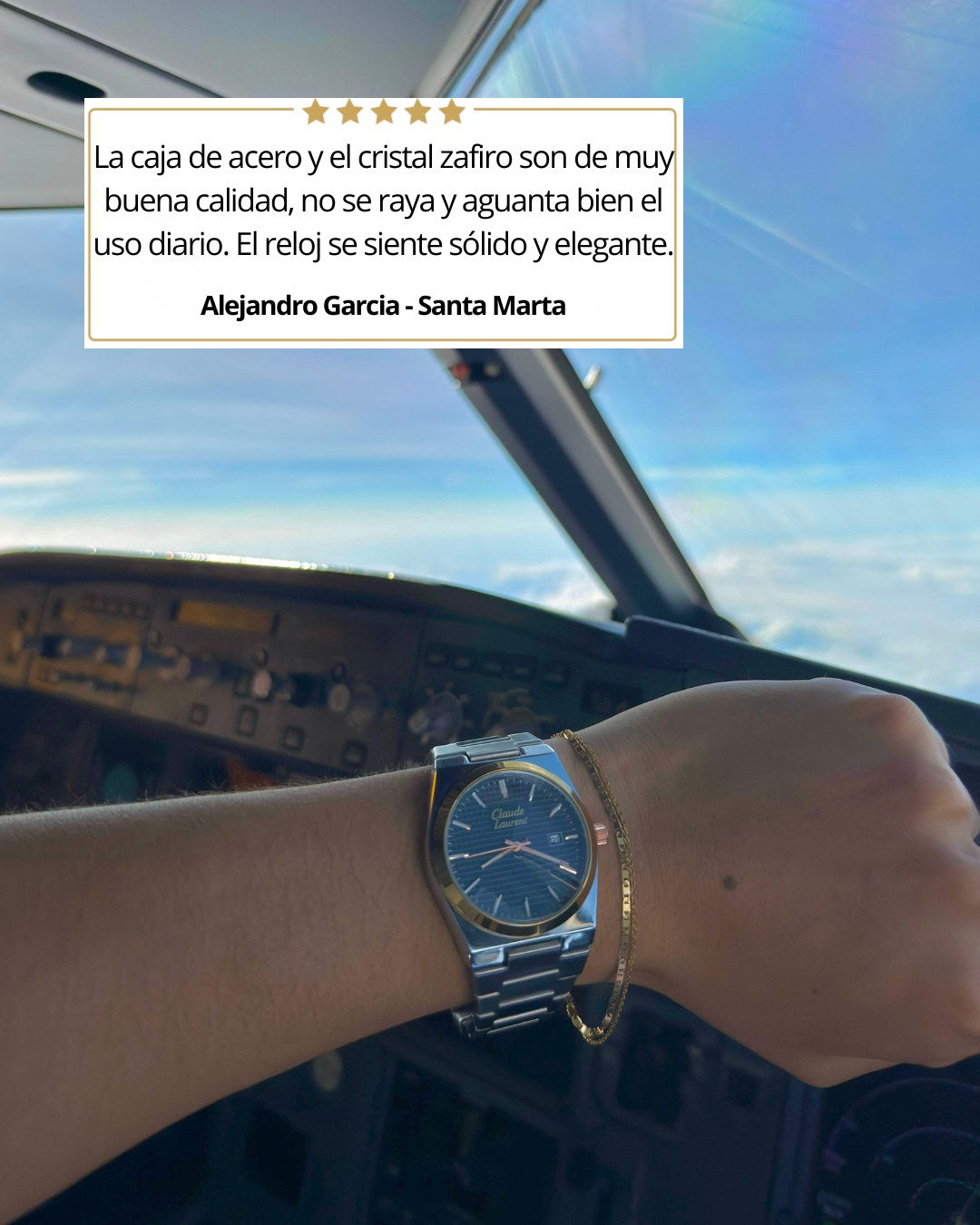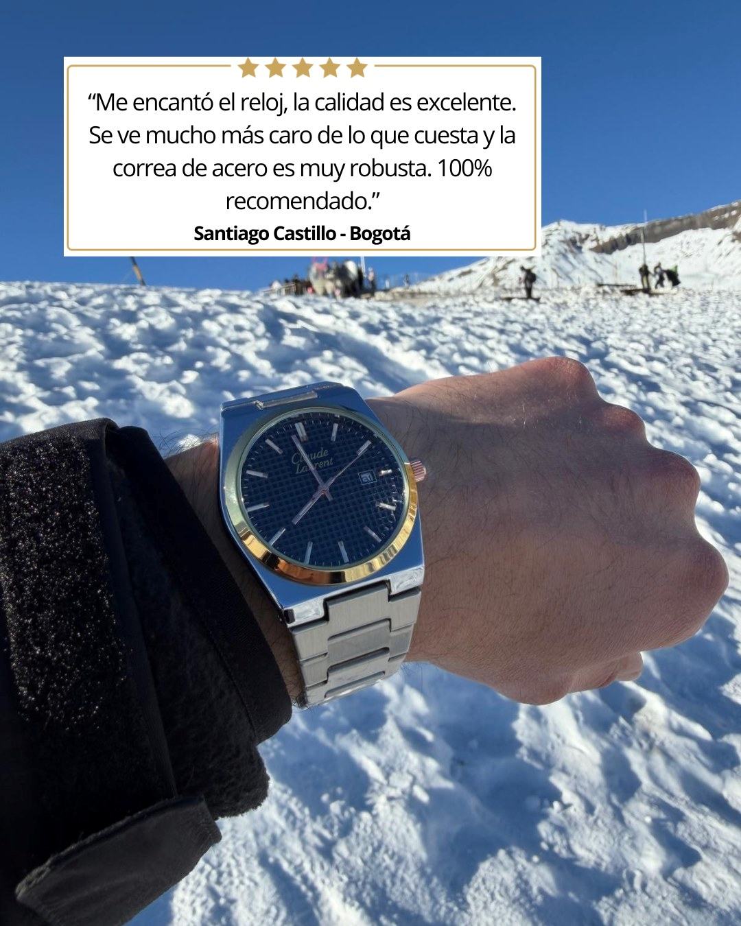 Con tu compra recibes un reloj Claude Laurent Monarque, Caja de lujo color negra, Set Montecarlo (pulsera, collar, anillo) y un certificado de autenticidad.